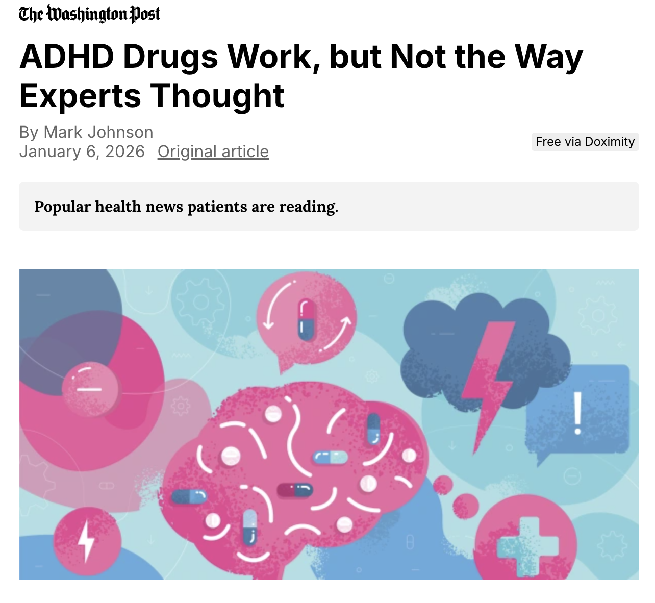 Johnson, M. (2026, January 6). ADHD drugs work, but not the way experts thought. The Washington Post. https://www.doximity.com/articles/664c8648-0aa8-4e50-9842-11d85524b15d